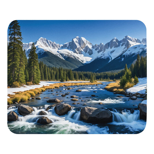 River Though Snowy Mountains Mouse Pad