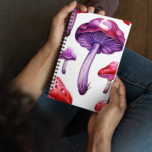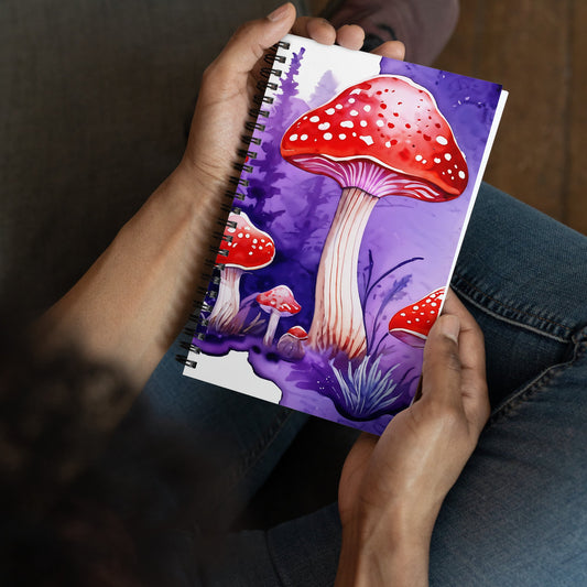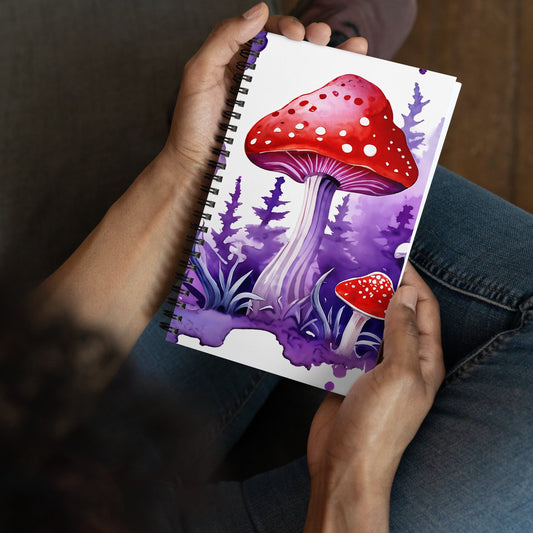 Purple and Red Mushrooms Watercolor Art Spiral Notebook