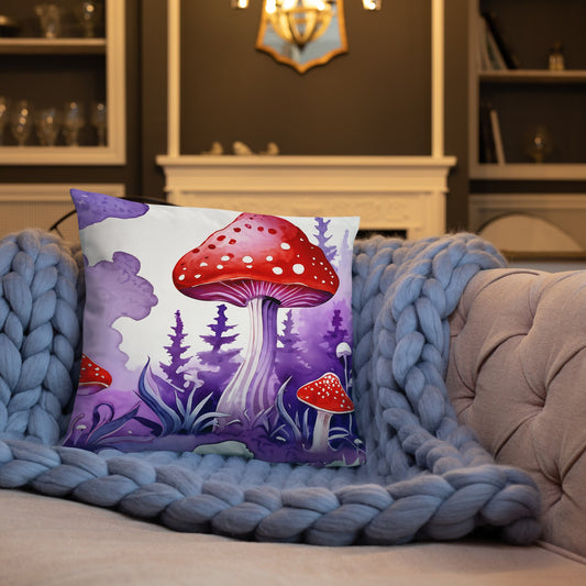 Purple and Red Mushrooms Watercolor Art Basic Pillow