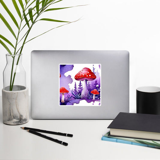 Purple and Red Mushrooms Watercolor Art Bubble-free Stickers