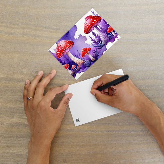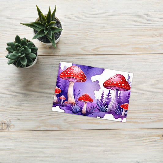 Purple and Red Mushrooms Watercolor Art Greeting Card