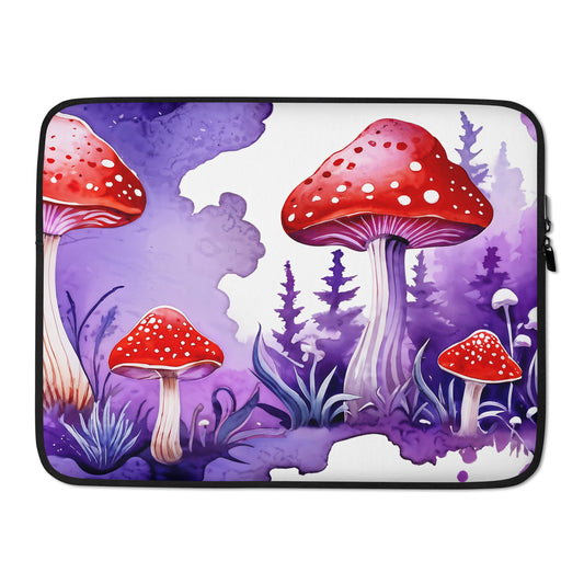 Purple and Red Mushrooms Watercolor Art Laptop Sleeve