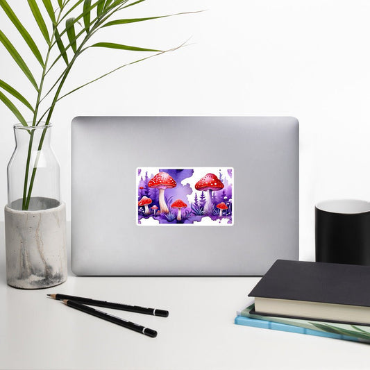Purple and Red Mushrooms Watercolor Art (wide view) Bubble-free Stickers