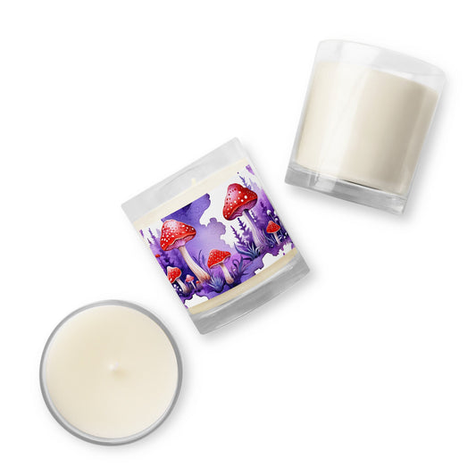 Purple and Red Mushrooms Watercolor Art Jar Soy Wax Candle