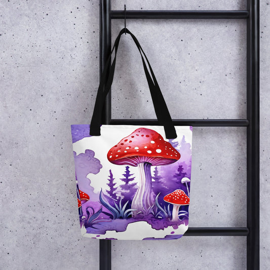 Purple and Red Mushrooms Watercolor Art Tote Bag
