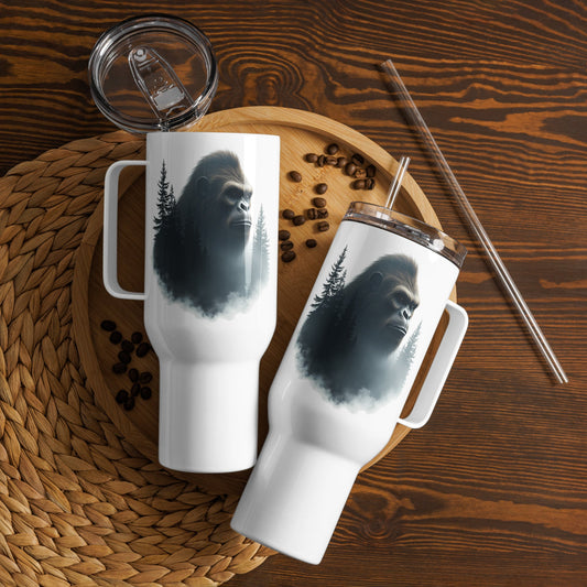 Bigfoot Watching Travel Mug With Handle (25 oz and 40 oz)