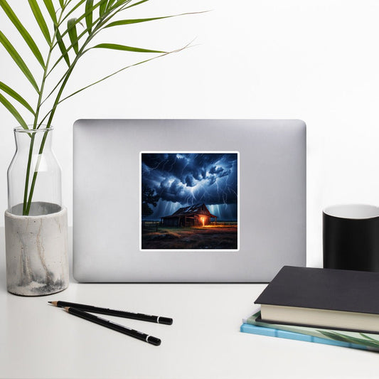 Old Barn In A Lightning Storm Bubble-free Stickers