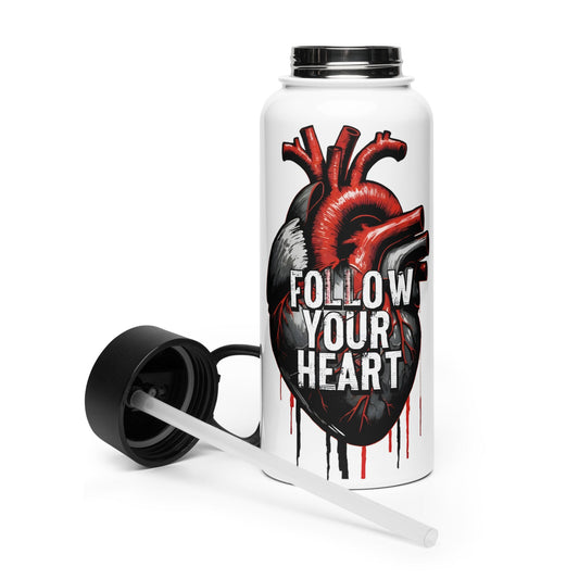 Follow Your Heart Stainless Steel Water Bottle With Straw Lid