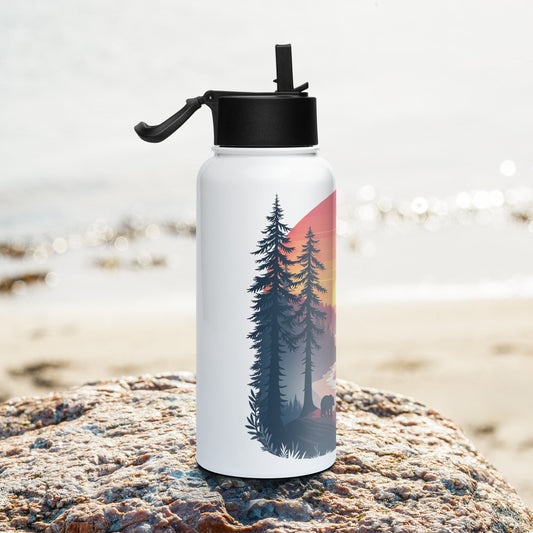 Alaska Sunset Forest II Stainless Steel Water Bottle With Straw Lid