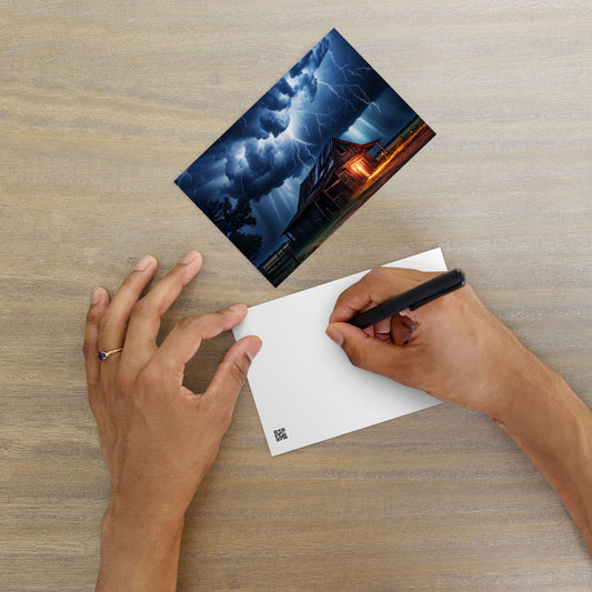 Old Barn In A Lightning Storm Standard Postcard