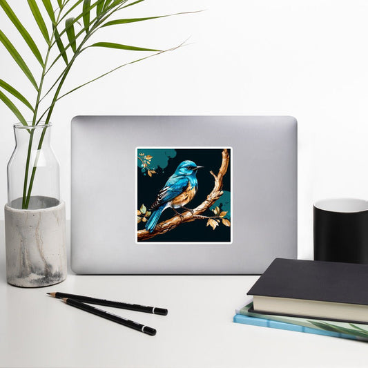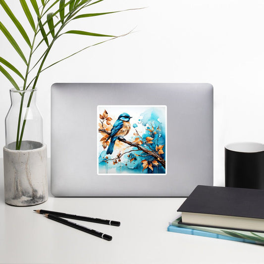 Blue and Tan Bird Perched Bubble-free Stickers