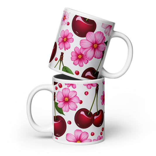 Cherries and Flowers White Glossy Mug (11 oz, 15 oz, 20 oz)