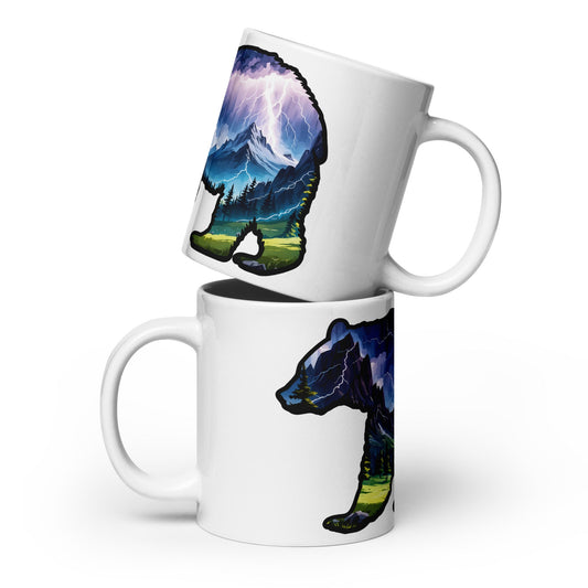 Lightning Over Mountains Bear White Glossy Mug (11 oz, 15 oz, 20 oz)