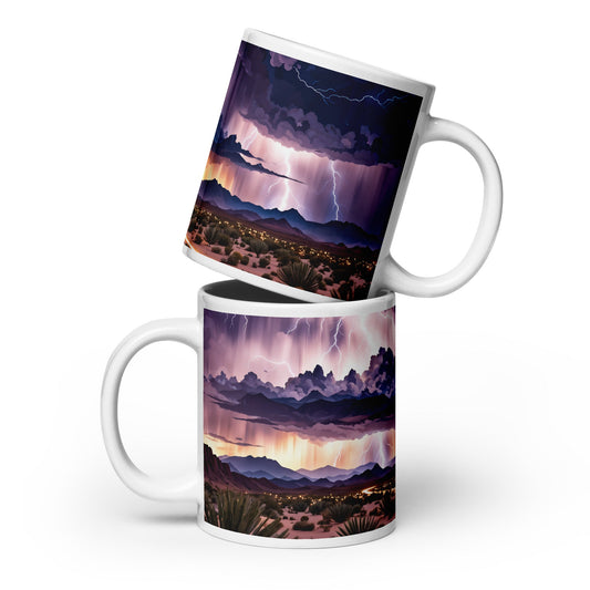 Lightning Over The Desert II White Glossy Mug (11 oz, 15 oz, 20 oz)