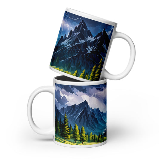 Lightning Over The Mountains II White Glossy Mug (11 oz, 15 oz, 20 oz)