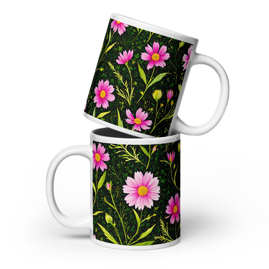 Pink Flowers II White Glossy Mug (11 oz, 15 oz, 20 oz)