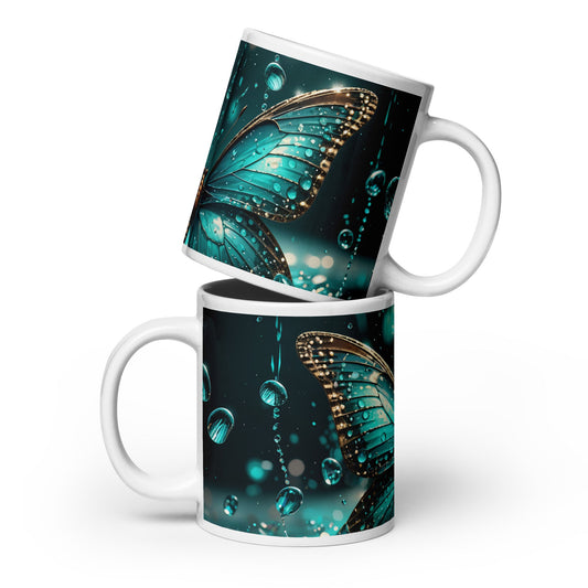 Turquoise Butterfly White Glossy Mug (11 oz, 15 oz, 20 oz)