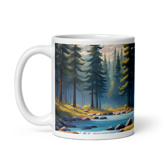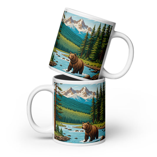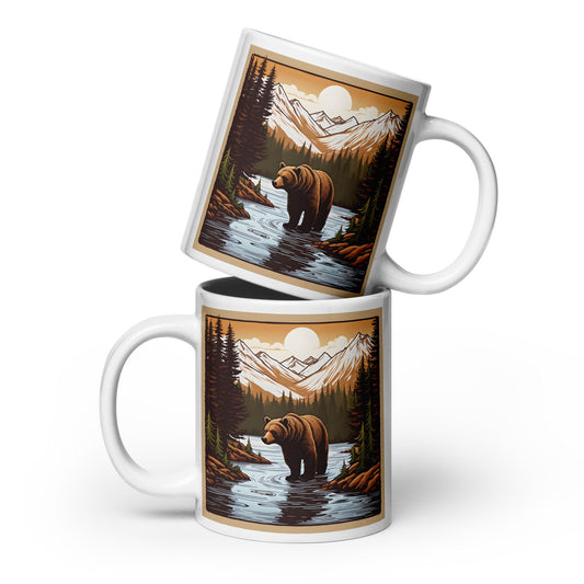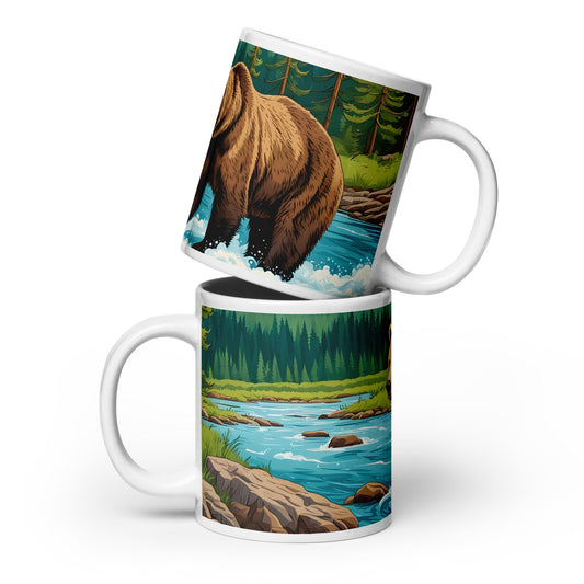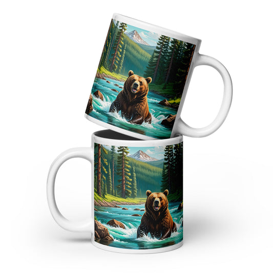 Brown Bear Near River White Glossy Mug (11 oz, 15 oz, 20 oz)