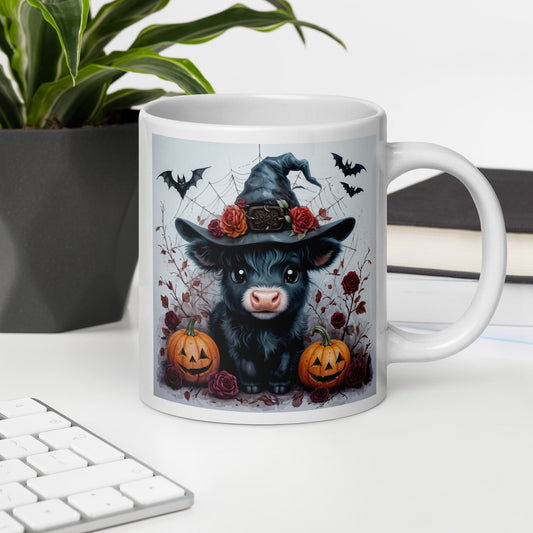 Halloween Cow White Glossy Mug (11 oz, 15 oz, 20 oz)