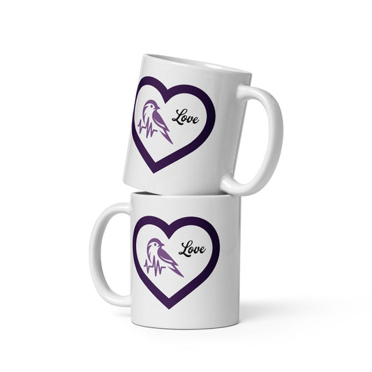 Purple Bird Heartbeat White Glossy Mug (11 oz, 15 oz, 20 oz)