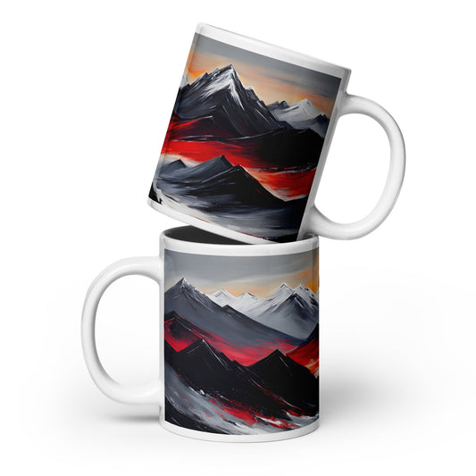 Black and Red Mountains White Glossy Mug