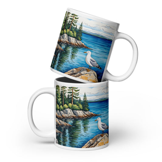 Seagull On A Rock II White Glossy Mug (11 oz, 15 oz, 20 oz)