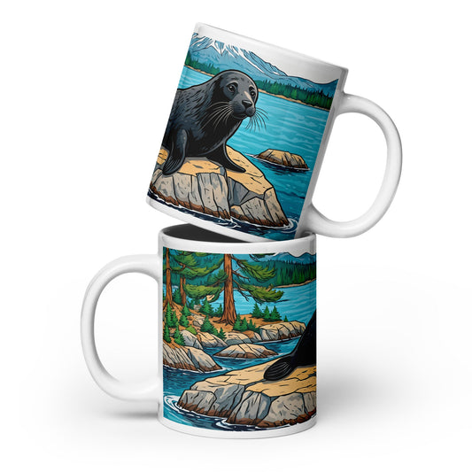 Seal On Rock White Glossy Mug (11 oz, 15 oz, 20 oz)